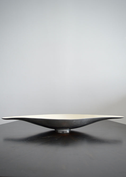 Modernist Aluminum & White Enamel Boat Bowl