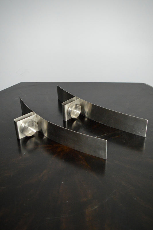 Curved Stainless Steel Wall Candle Sconces (Set of 2)