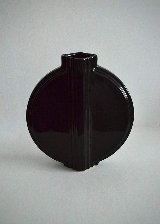 Black Art Deco Round Ceramic Vase